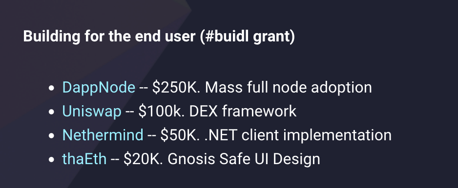 - Gitcoin grants to incentivise bug fixing and maintenance and attract talent by incentivising drive-by open-source contributions