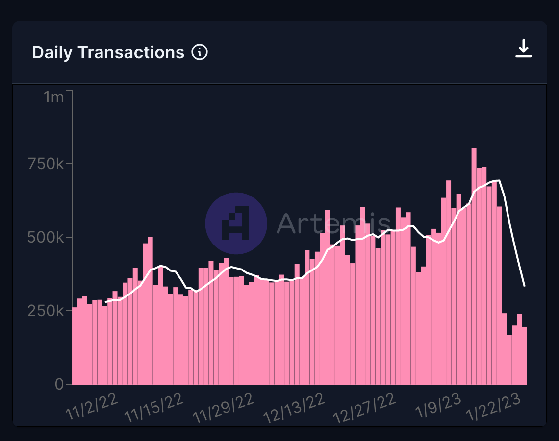 We can also see Optimism's daily transactions overall in decline after the Quest incentive programs ended.