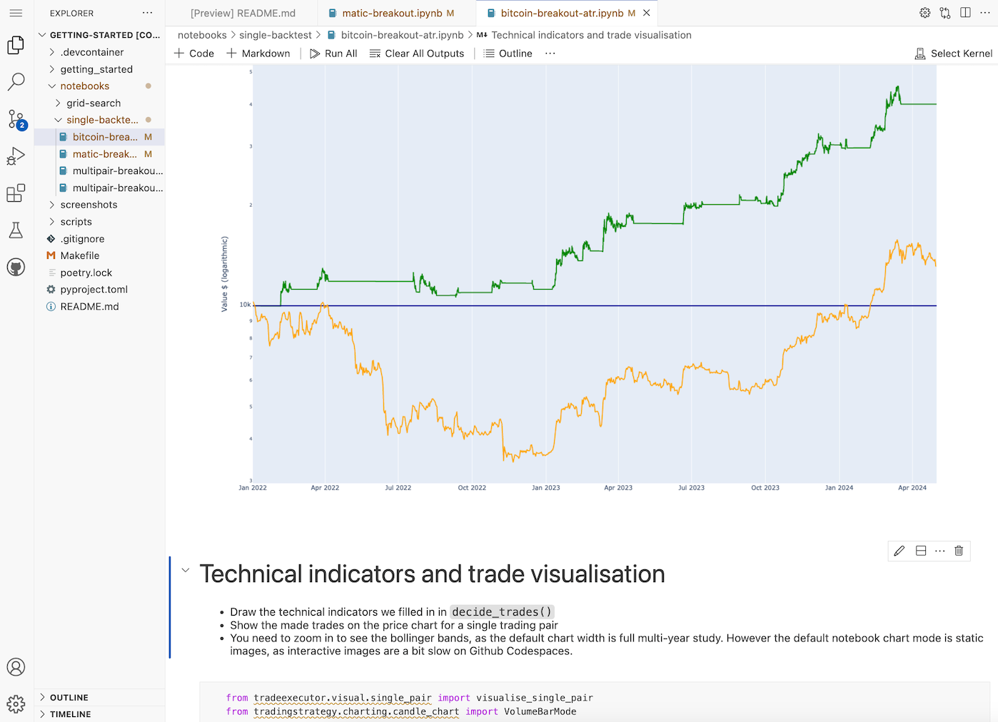 It's a fantastic time to be a Python developer in the trading world. Trading Strategy protocol and Python, the leading quant language globally, offer an unparalleled opportunity to create automated algorithmic trading strategies for decentralised markets. Our protocol allows you to leverage Python's flexibility to develop various technical analysis-based and quantitative strategies that trade either a single trading pair, multiple pairs, or even entire portfolios of assets. Whether you're looking to explore new trading strategies or refine your established ones, our comprehensive backtesting tools are here to optimise your strategies effectively. Here you can find our brand new Getting Started Guide and example notebooks.