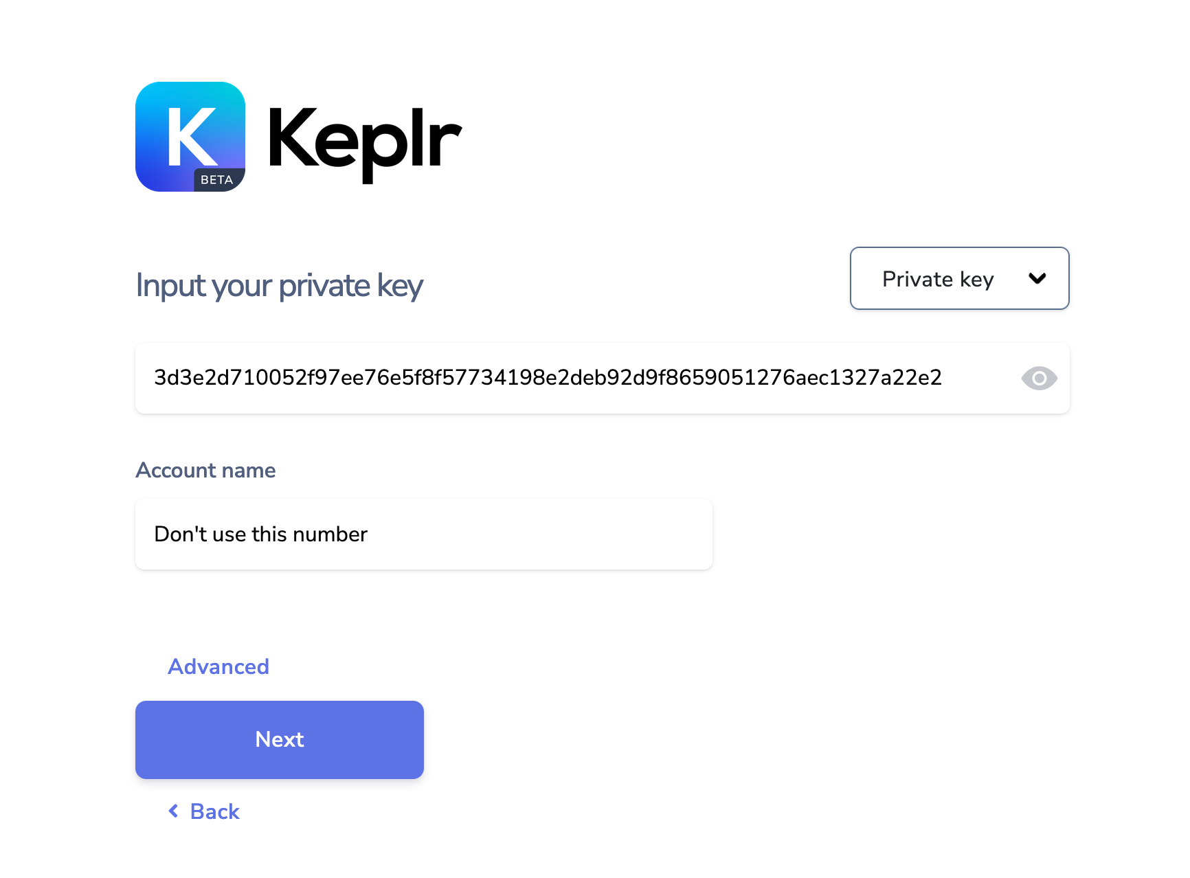 Importing a raw private key to Keplr