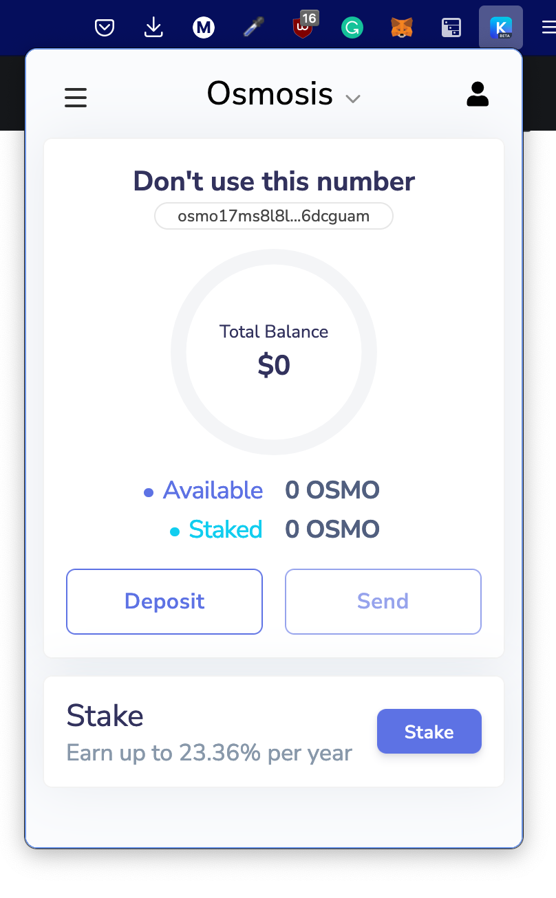 And then you can choose to use this private key with different Cosmos blockchains like Osmosis: