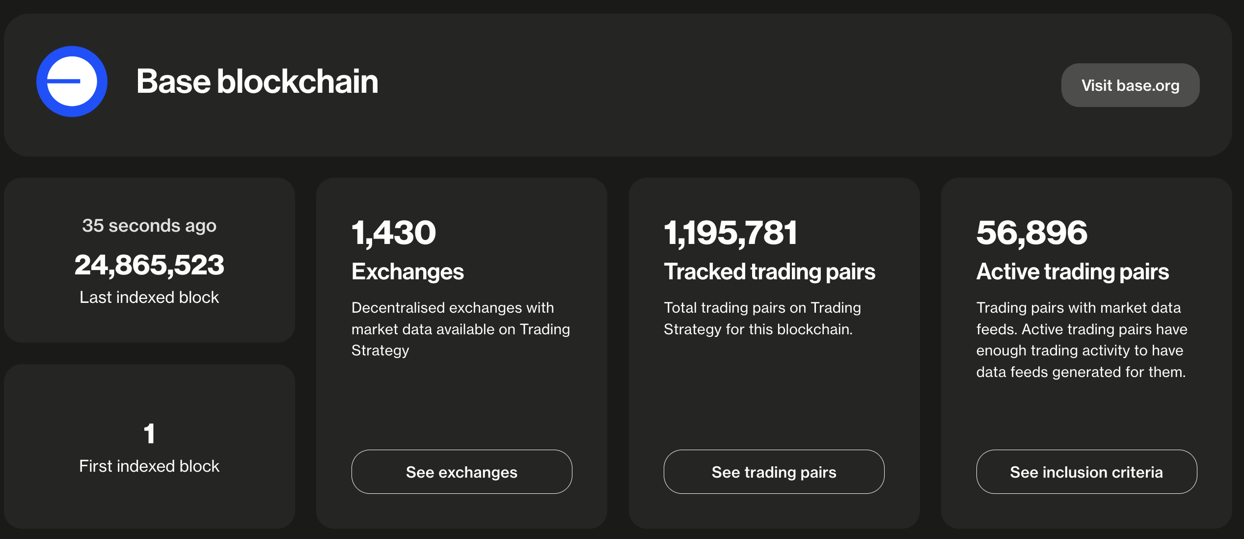 Explore Base's DEX data here or download full datasets as compressed Parquet files.