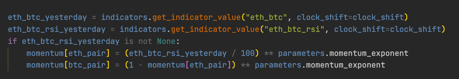 - Momentum exponent: the factor of how strongly to rebalance between ETH/BTC