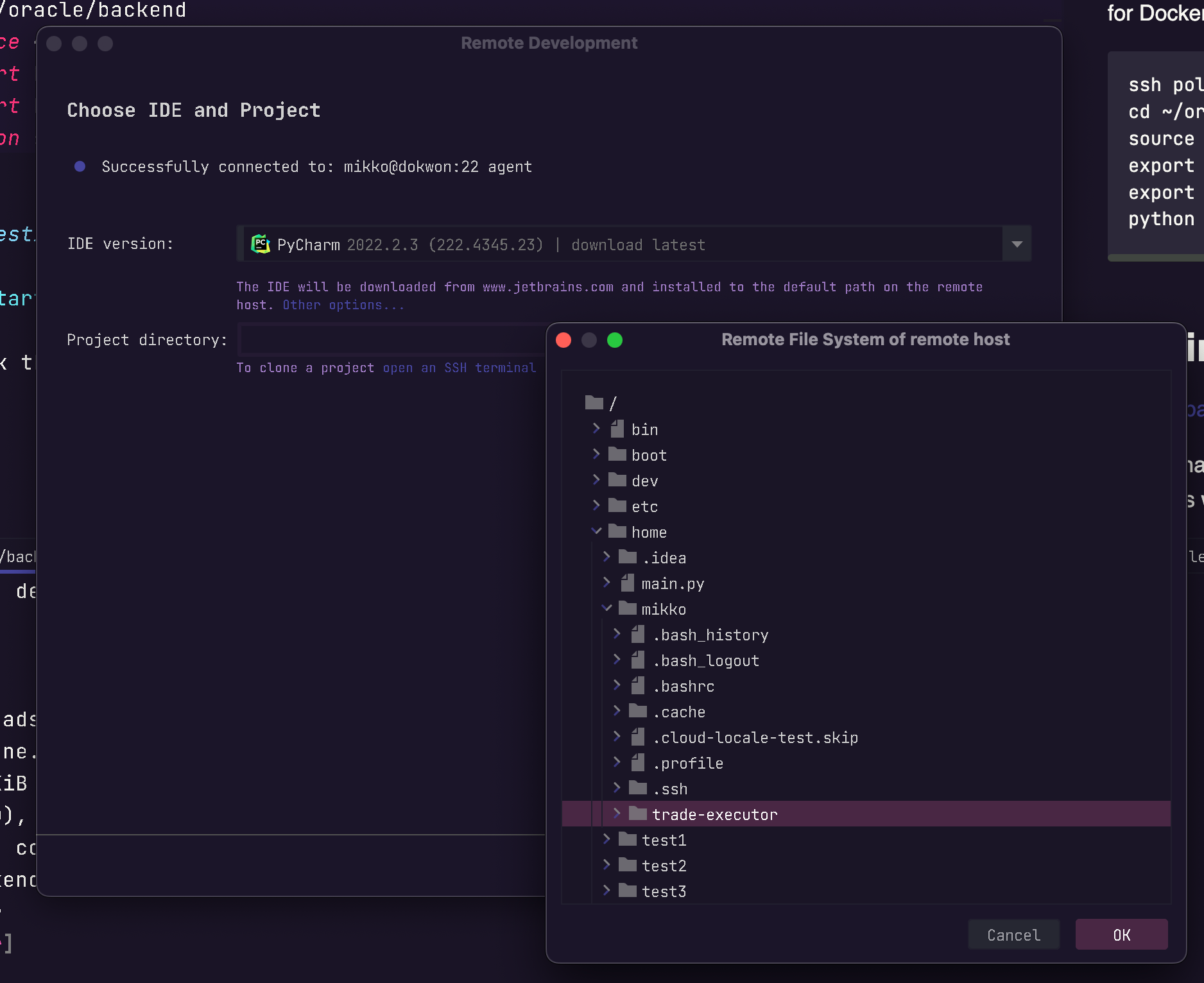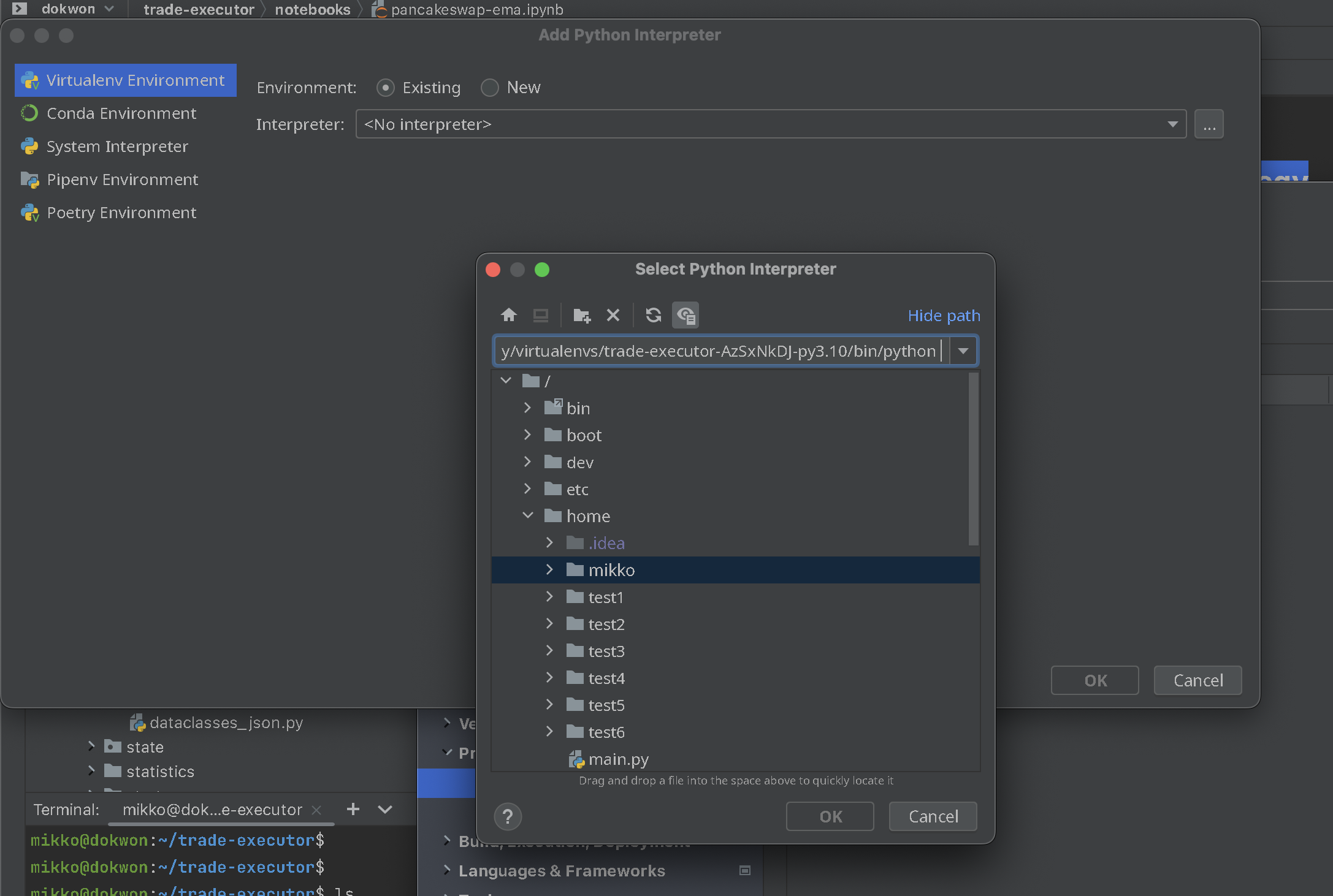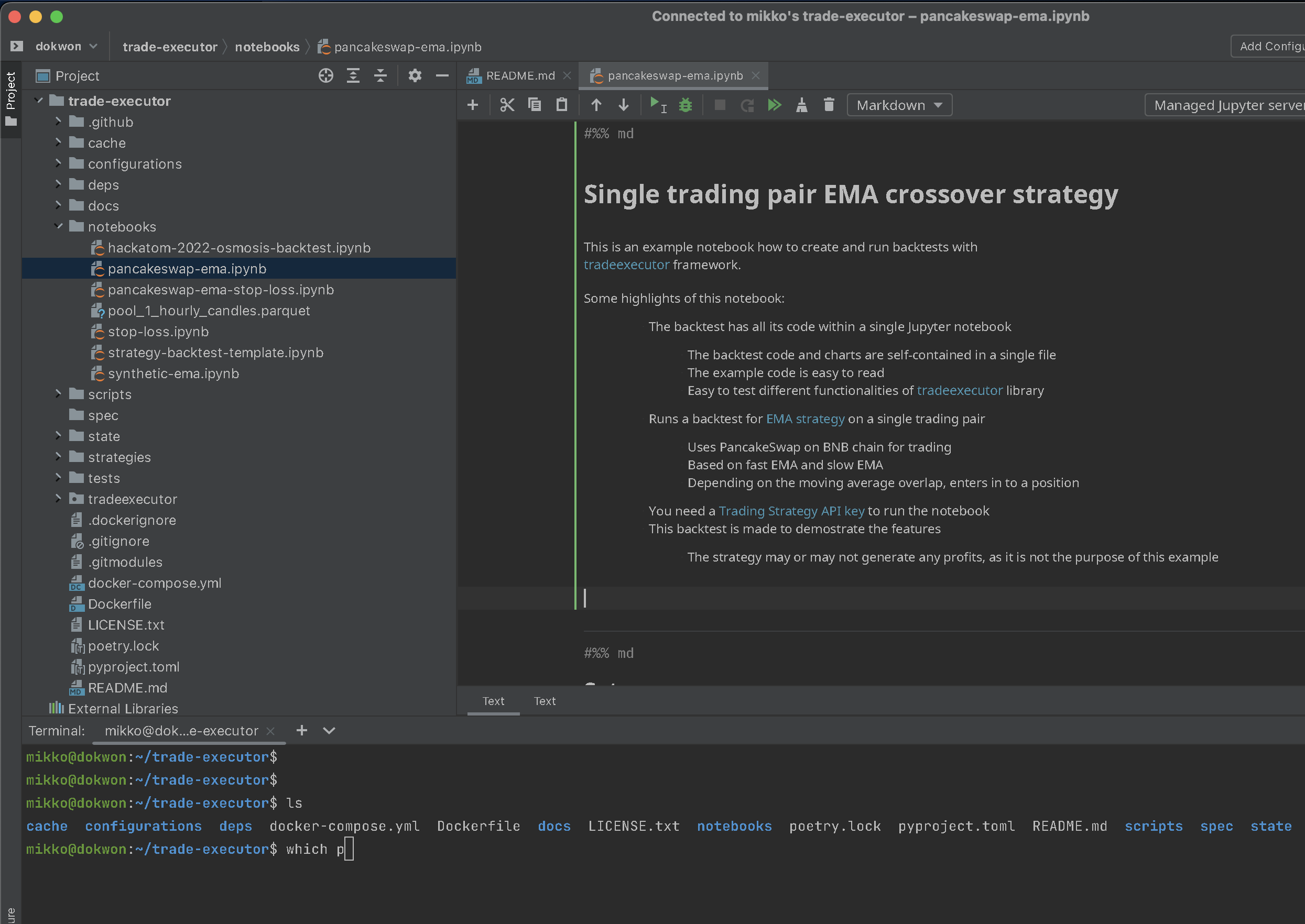 /home/mikko/my-projecte.g. by doing git checkout in SSH sessiongit clone [email protected]:tradingstrategy-ai/example.git - If your Python working environment is Poetry based, you need to install