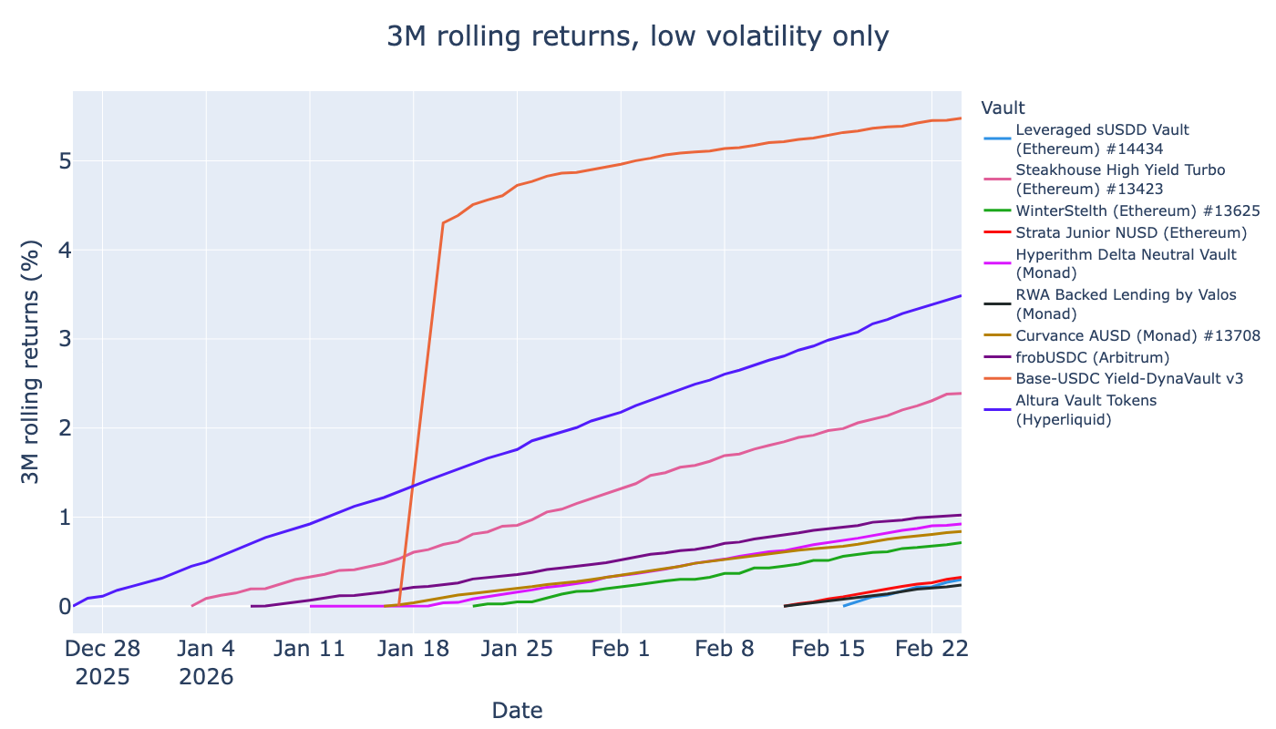 - Here, we list the best vaults by their last month's performance, and charts for three-month rolling returns