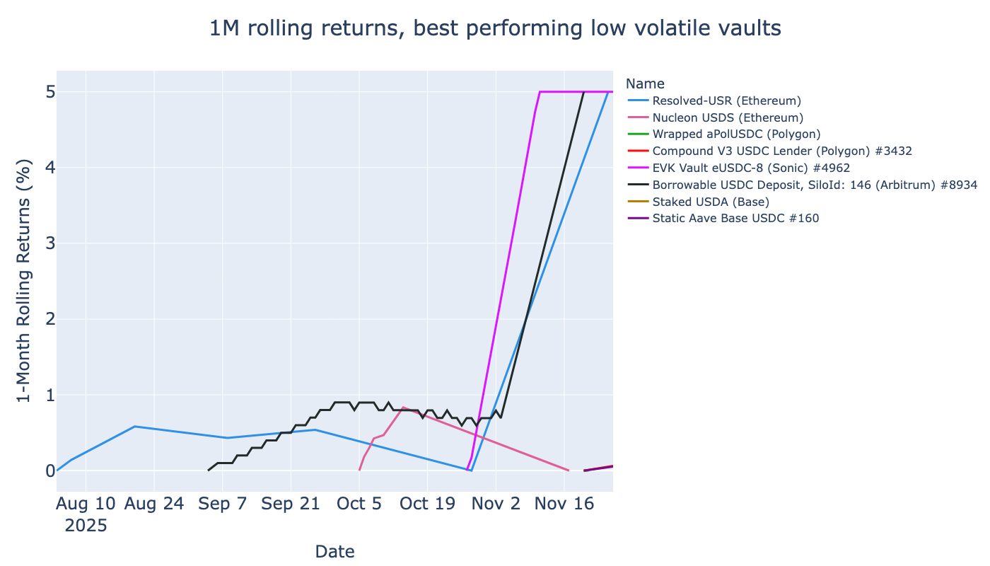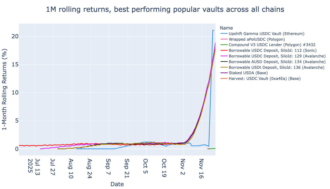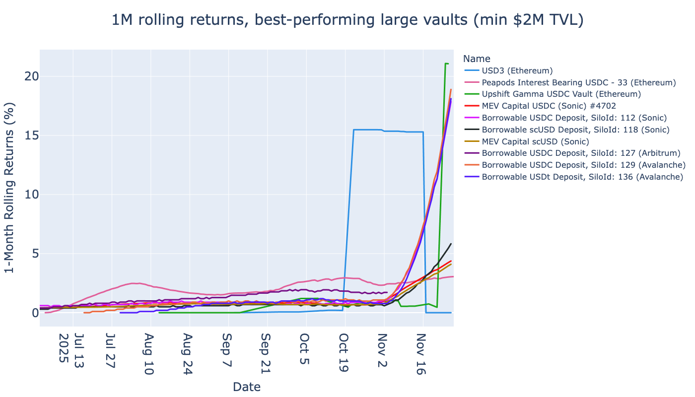 In this monthly report, we examine the best-performing USD-denominated DeFi vaults across blockchains.