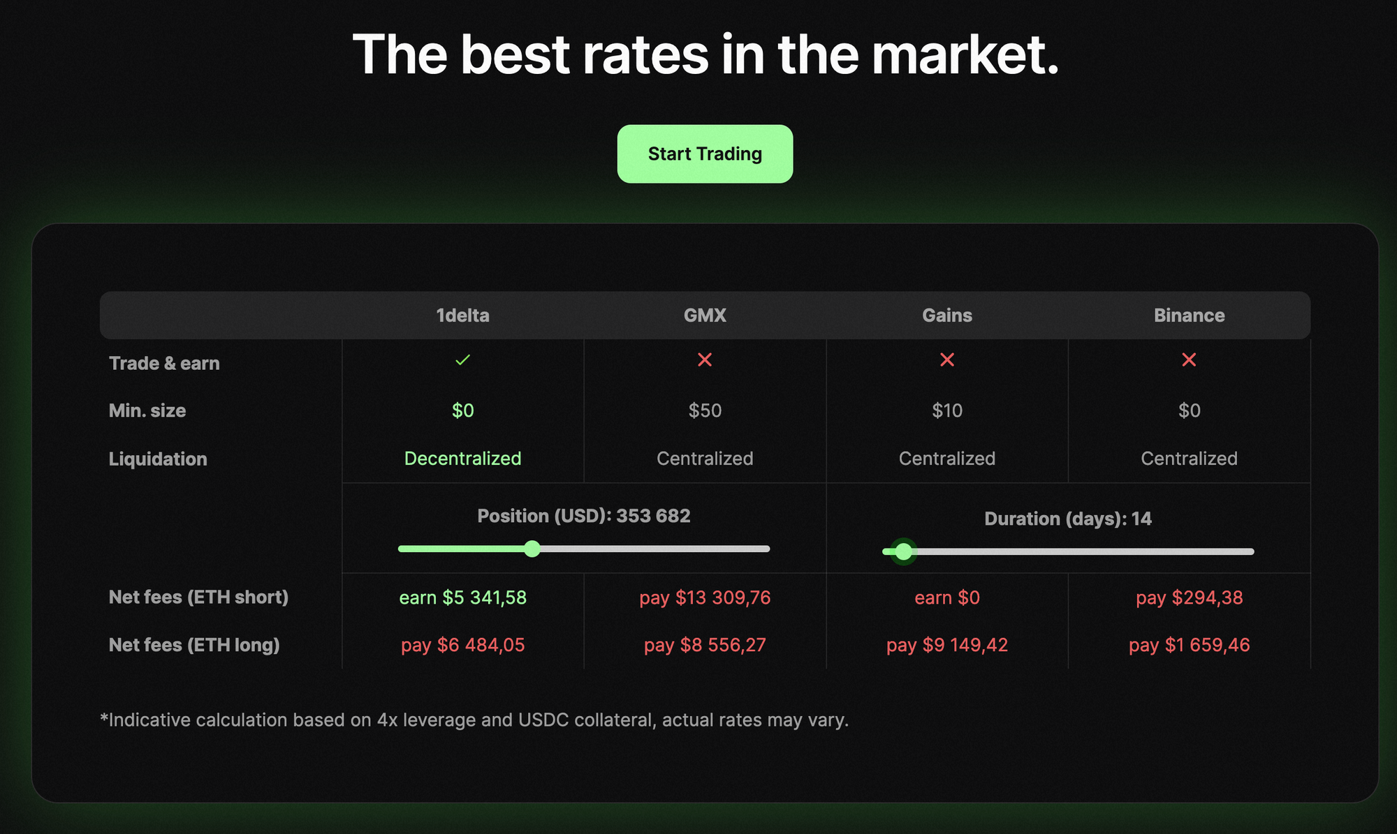 1delta is a decentralised brokerage protocol that allows users to access DeFi’s liquidity from established DEX and lending protocols, offering best execution and advanced trading features like margin trading based on existing liquidity. 1delta’s objective is to bring a decentralised brokerage service (comparable to Interactive Brokers in CeFi) to EVMs, providing access to DeFi’s deep liquidity in a single protocol.